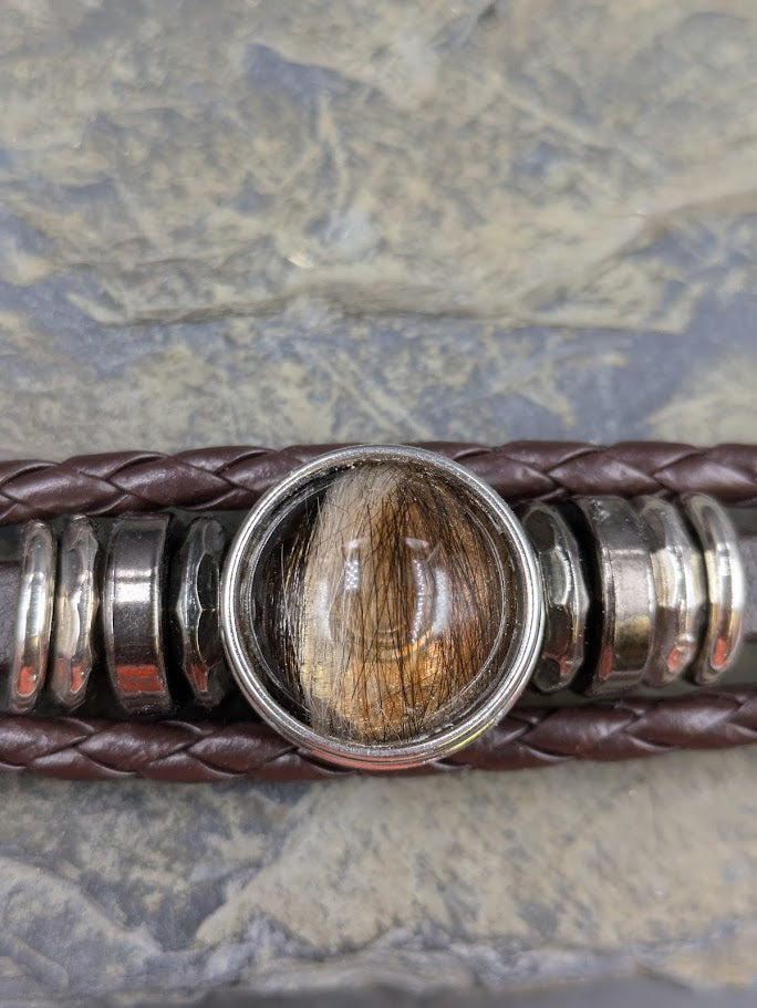Silver or gold leaf can be added free of charge. The bracelet is made of genuine leather and is adjustable in two positions.